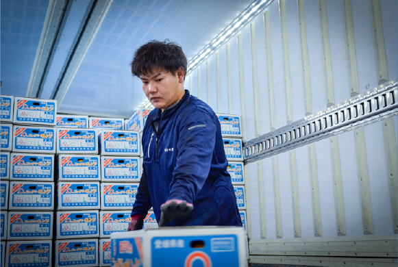 社内の派閥がなく、社員どうし仲の良いことが特徴だと思います。勤務時間外ももちろん楽しい時間を過ごしていますが、仕事時間中においても、トラックへの荷物の積み下ろしなど、ひとりで行うととても大変な仕事なのですが、みんなが手伝ってくれるので、助かっています。また、トラックドライバーとして、会社に所属している年数の長い社員さんが多いので、何でも相談に乗ってくれるのもありがたいですね。